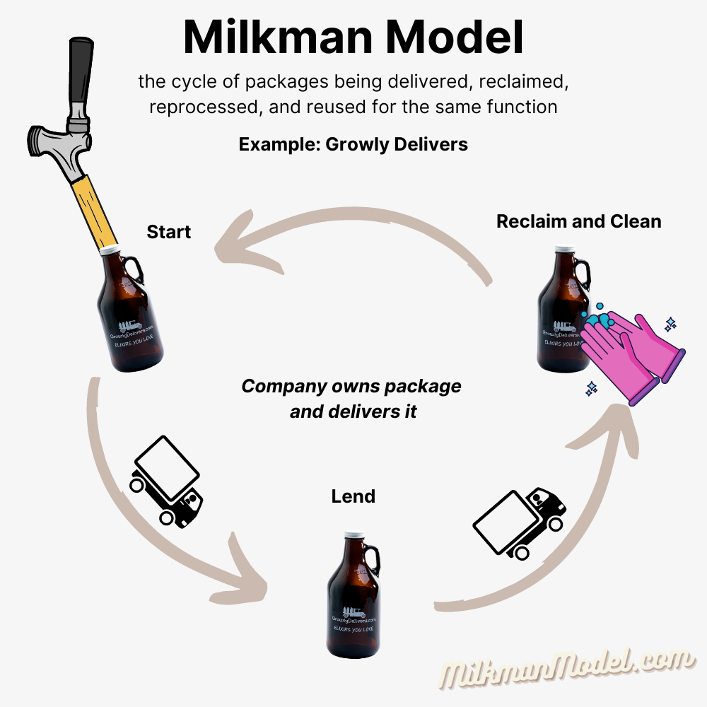 The original version of the milkman model was designed for dairies to package their product. In the late 19th to early 20th century, there were few packaging companies and container costs were prohibitive to sell as single-use. Especially for quickly perishable goods like milk. Dairy companies either bottled their own milk or partnered with other dairies to share the cost of managing bottles. Essentially, the milkman model existed as a practical way to package and sell products.