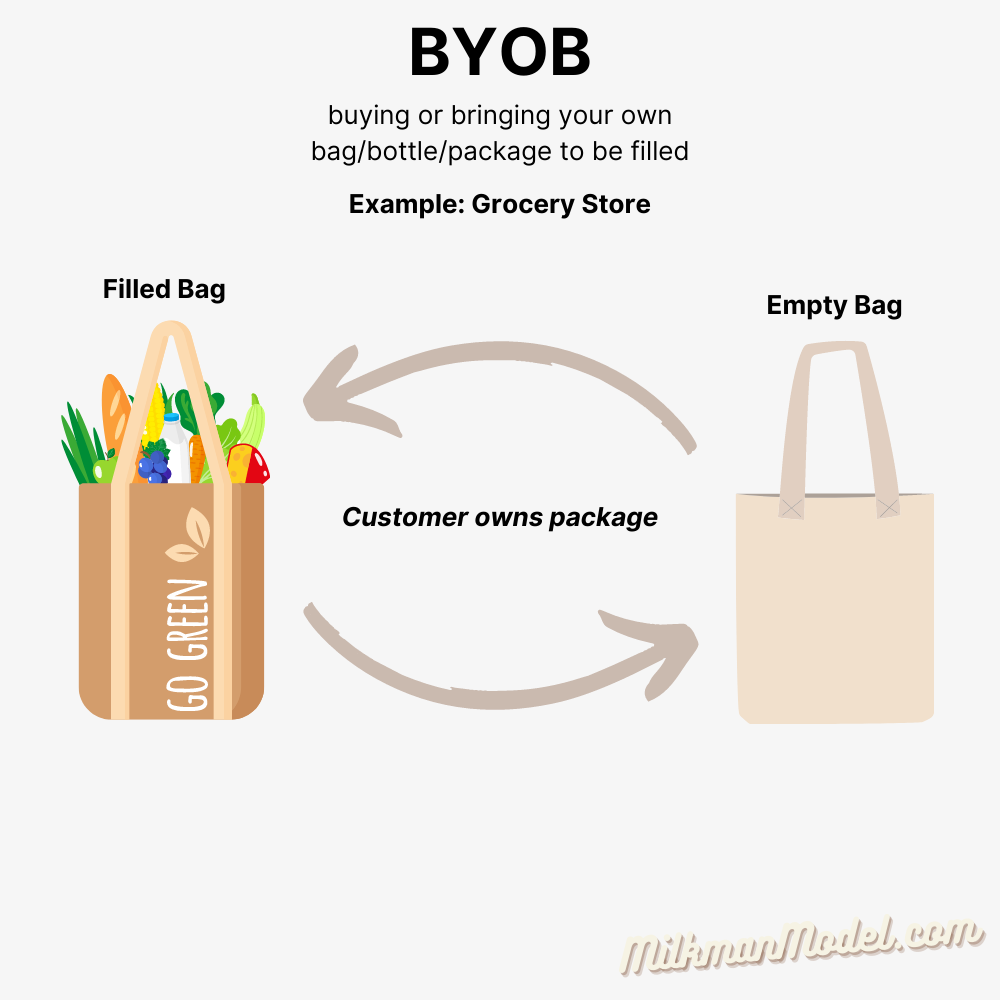 As a result, people have gravitated towards reuse, refill, and the milkman model…but what exactly do these terms mean? If I bring my reusable water bottle to work, is that considered reuse or refill? Reuse is a catch-all term for reuse, refill, and the milkman model…but there are nuances to each model.